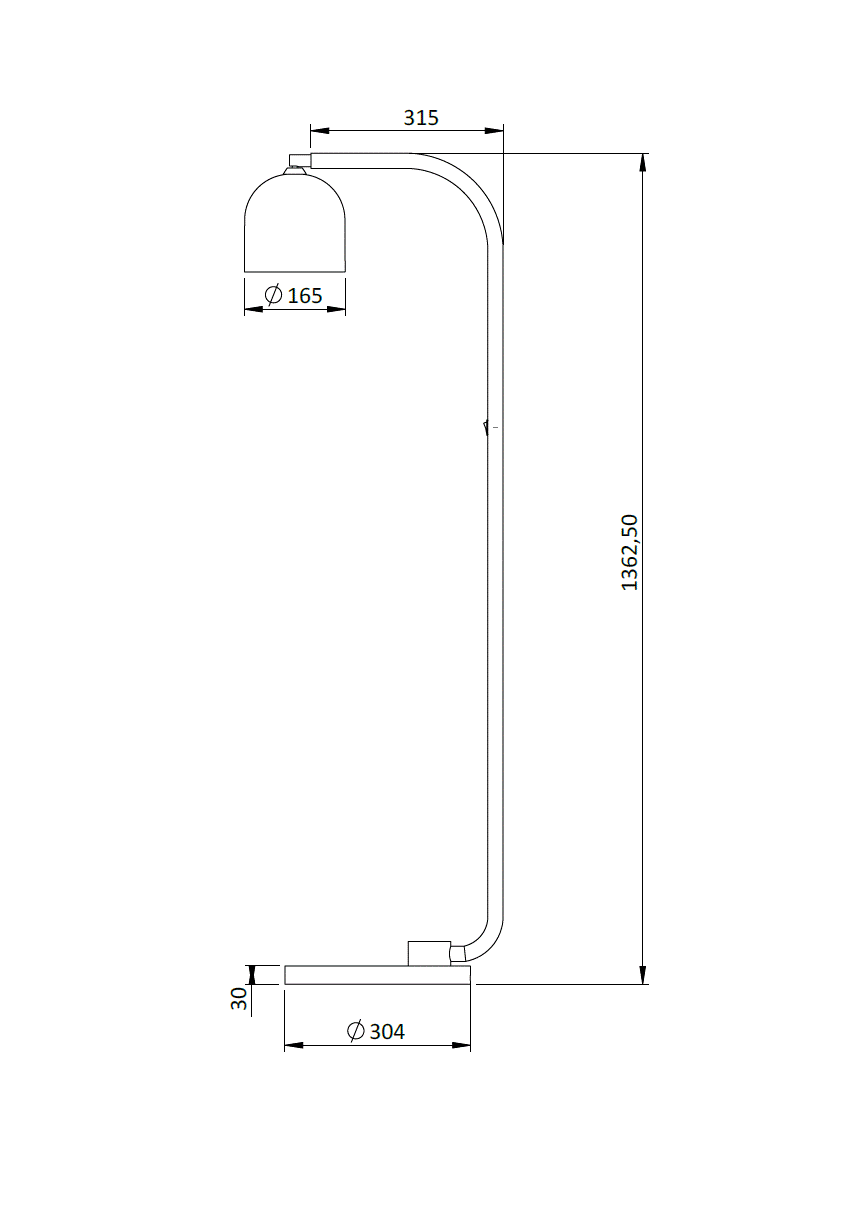 Ein einziger Messingrohr-Bogen, von der Marmorbasis bis zum Reflektor in einer fließenden Linie geführt — die S 8013 verbindet geometrische Klarheit mit materieller Opulenz. Der glockenförmige Schirm aus hochglanzpoliertem Messing richtet das Licht als warmen, konzentrierten Kegel nach unten.